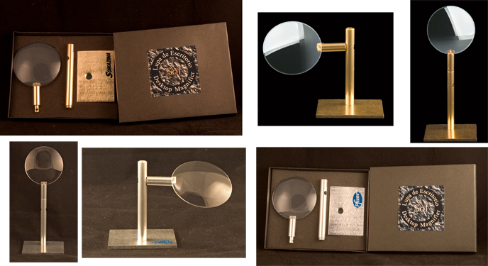 Lupa decorativa desarrollada en bronce y aluminio con una base de 70 x 50 mm destinada a la impresión de su marca. Originalmente desarrollada para una ser recibida por médicos oncólogos puede utilizarse como recordatorio de marca en cualquier actividad que requiera revisar documentos con minuciosidad.- Joyería, Coleccionistas, Bancarios, Arquitectura, etc.